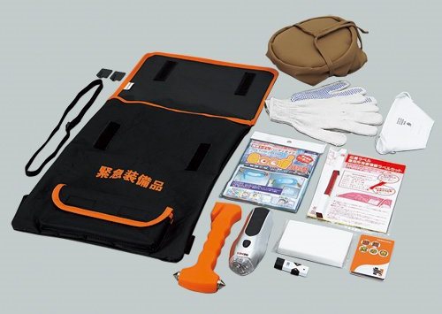車に乗っているときに地震が起きた場合、速やかに道路わきに止めてキーを付けたまま避難しなければなりません。そのような場合を想定し車内環境に耐えうる厳選された10アイテムの防災用品を収容しました。