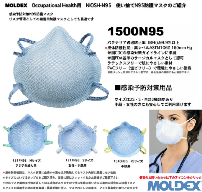 「MOLDEX N95高性能マスク 5枚入」は、NIOSHのN95基準をクリア、米国CDC(米国疾病管理予防センター)「医療施設における結核感染防止のためのガイドライン」に適合したウイルス対策マスクです。