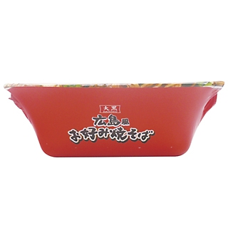 【原材料名】油揚げめん(小麦粉、植物油脂、食塩、ポークエキス、醤油)、糖類、キャベツ、あげ玉、醤油、野菜果実類、植物油脂、食塩、醸造酢、香辛料、七味唐辛子、酵母エキス、でん粉、オイスターエキス、かつお粉末、調味料(アミノ酸等)、酒精、炭酸Ca、増粘多糖類、カラメル色素、かんすい、酸化防止剤(ビタミンE、ビタミンC)、甘味料(ステビア、甘草)、ビタミンB1、ビタミンB2、(原材料の一部に、いか、りんごを含む)