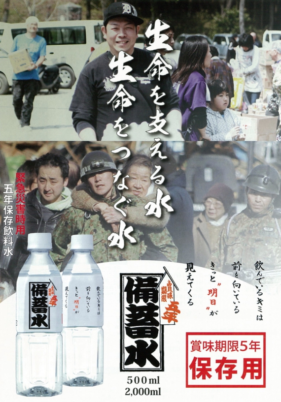 防衛省備蓄用飲料水として、仙台駐屯地、福島郡山駐屯地、大村駐屯地への納入実績が有る「信頼」の長期保存水です。