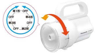 ※2 パナソニックアルカリ乾電池を単1形~単4形まで全サイズ使用時の合計時間。連続使用時は、各サイズのスイッチの切り替え作業が必要です。
