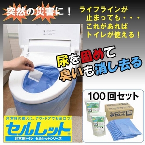 非常時の必需品!・・・水を使わない非常用トイレです。非常時にライフラインがストップ!・・・でも、便はストップしてくれません。このセルレットは、そんな非常時でもトイレができる強力な味方です。