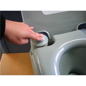 このポータブルトイレは洗浄用に水をためておく上部タンク(便座部分)と、汚物を溜めておく下部タンクに別れており、この2つのタンクを取り外すことが出来ますので、汚物の処理も簡単に行えます。