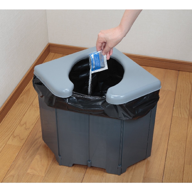 フタを外せば、即トイレ。尿をすばやく固める凝固剤付きです。