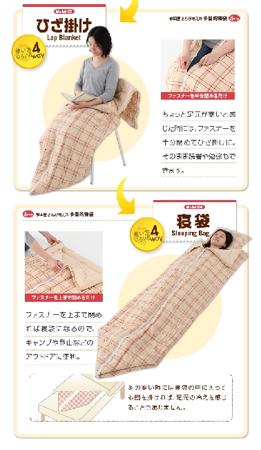 ちょっと足元が寒いと感じた時には、ファスナーを半分閉めてひざ掛けに。そのまま読書や勉強もできます