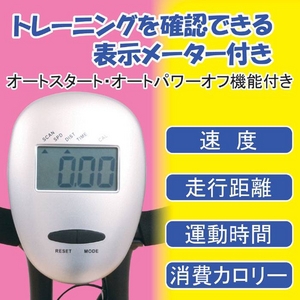 運動経過などが表示されるメーターは、ペダルを踏み始めるとスイッチオン、停止してから数分後には電源がオフになるオート電源システムになってます。