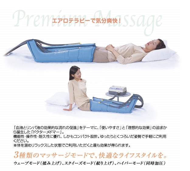 「血液とリンパ液の効果的な流れの促進」をテーマに、「使いやすさ」と「理想的な効果」の追求から誕生した「ドクターメドマー」。機能性・操作性・耐久性に優れ、しかもコンパクト設計。ゆったりとくつろいだ姿勢で手軽にご利用ください。