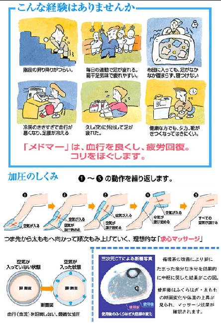 - 空気袋をオーバーラップさせてあり、揉み残し部位のない効果的なマッサージが行えます。