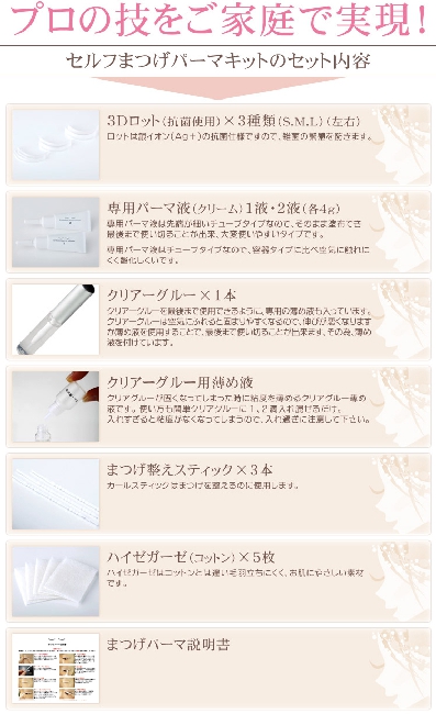 - 解りやすい説明書で初めてでも簡単にまつげパーマが出来ます。