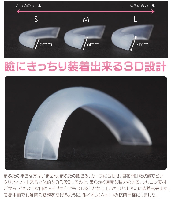 - ロットは特殊技術によるシリコン製でまぶたにフィットしやすく耐久性にも優れ何度でも半永久的に繰り返しご使用できます。