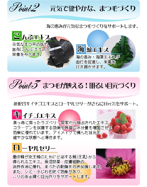 まつ毛パーマや日々のアイメイクで痛んだまつ毛を「濃く」&「長く」&「美しく」育て、ノーメイクでもインパクトある目元づくりを応援します。
