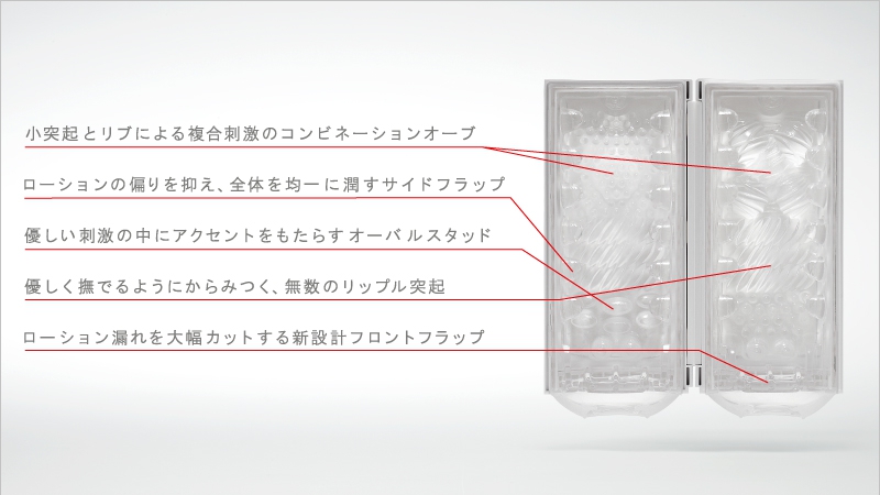 柔らかいクッション&ゲルのふっくらとした感触と、高低差の 少ない繊細なディテールが、とろけるように滑らかな快感をもたらします。