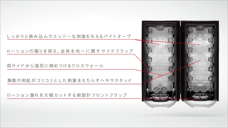 高反発ウレタン&高弾力ゲルが生み出す締めつけと、 凹凸感のある立体的なディテールが、 クッキリとしたメリハリのある刺激を演出します。