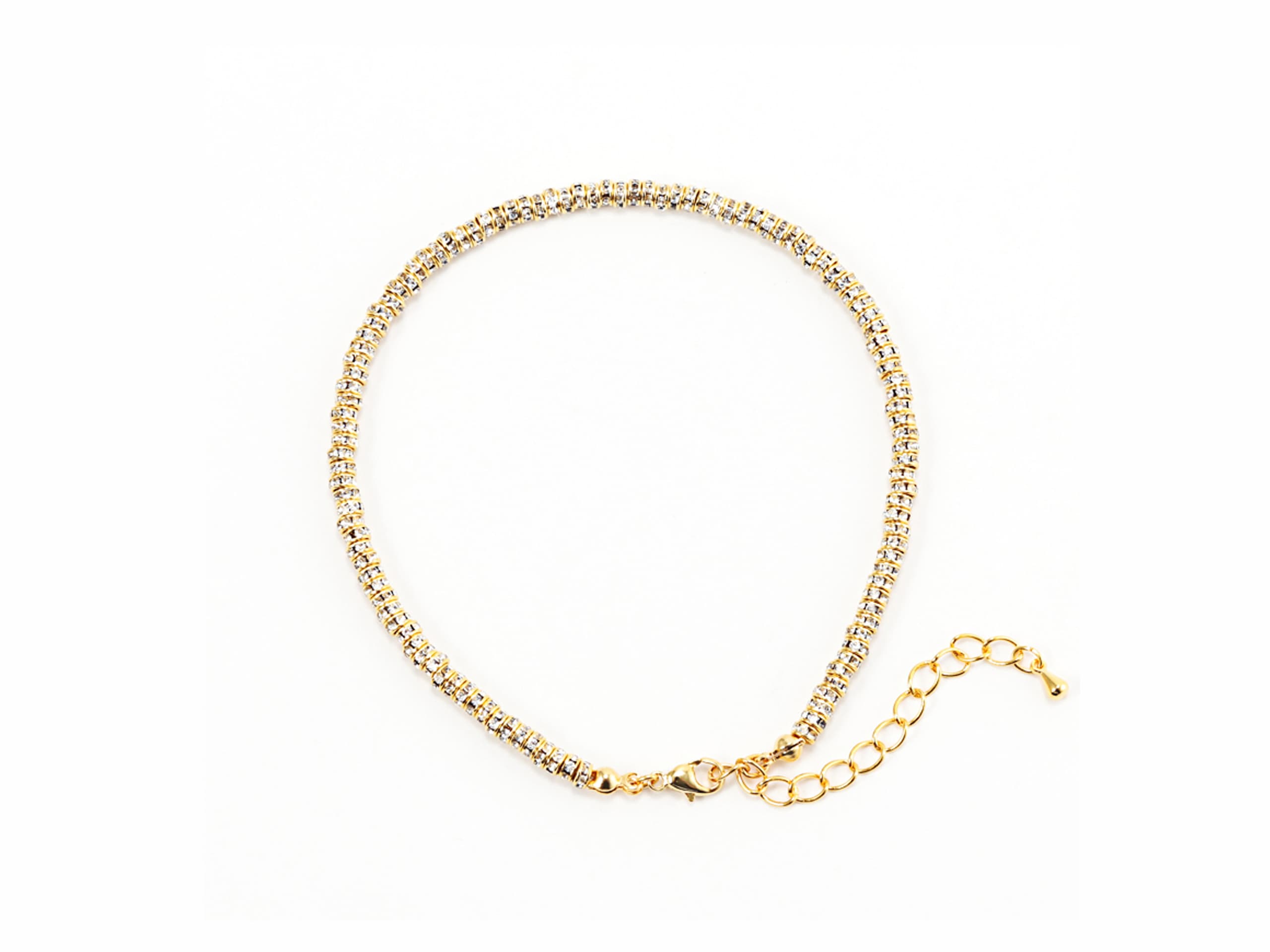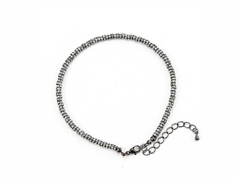 スワロフスキーを贅沢に使ったアンクレットは、タイトに巻いたりルーズに巻いたり、重ね付けしたり、、服やカバンに付けるのが人気。スワロフスキーを使ったシンプルなデザインのアンクレットですが、とてもキラキラと輝き、インパクトありのメンズ・レディース兼用アンクレット!